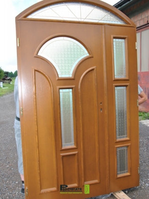Drzwi, które prezentujemy Państwu poniżej są efektem naszej pracy poczynając od obróbki materiału drzewnego, wykonania elementów a kończąc na lakierowaniu i szkleniu.