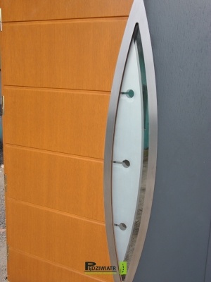 Zaprojektowaliśmy i wyprodukowaliśmy drzwi drewniane garażowe nawiązujące modelem do drzwi wejściowych.